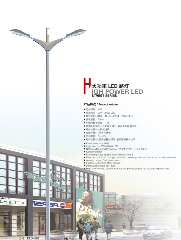 ● 燈桿為鋼件,經(jīng)熱鍍鋅處理后,表面聚脂粉體涂裝